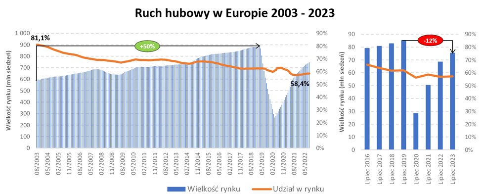 Udział ruchu hubowego w Europie to obecnie 58% względem 81% w 2004