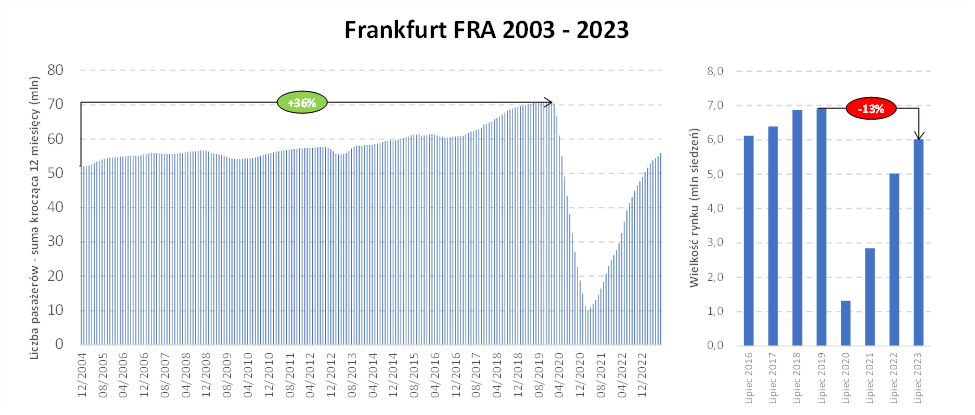 FRA w latach 2004 – 2019 wzrósł o 36%, z 52 do 71 mln pasażerów