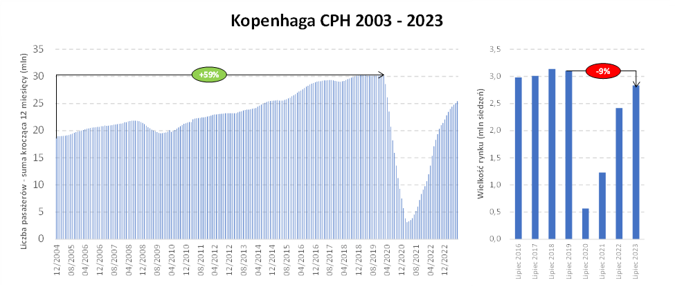 CPH w latach 2004 – 2019 wzrosła o 59%, z 19 do 30 mln pasażerów, średnio 750 tys. rocznie