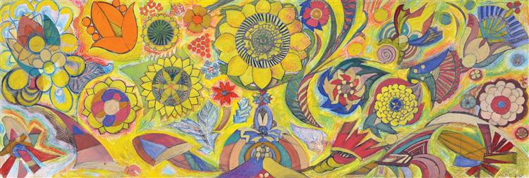 Gorska was also friends with Maria Prymachenko and was inspired by the works of Sobachko-Shostak. The influence of the latter can be seen in many sketches and monumental works of Alla Gorska, such as "Boryviter" and "Tree of Life" in Mariupol.