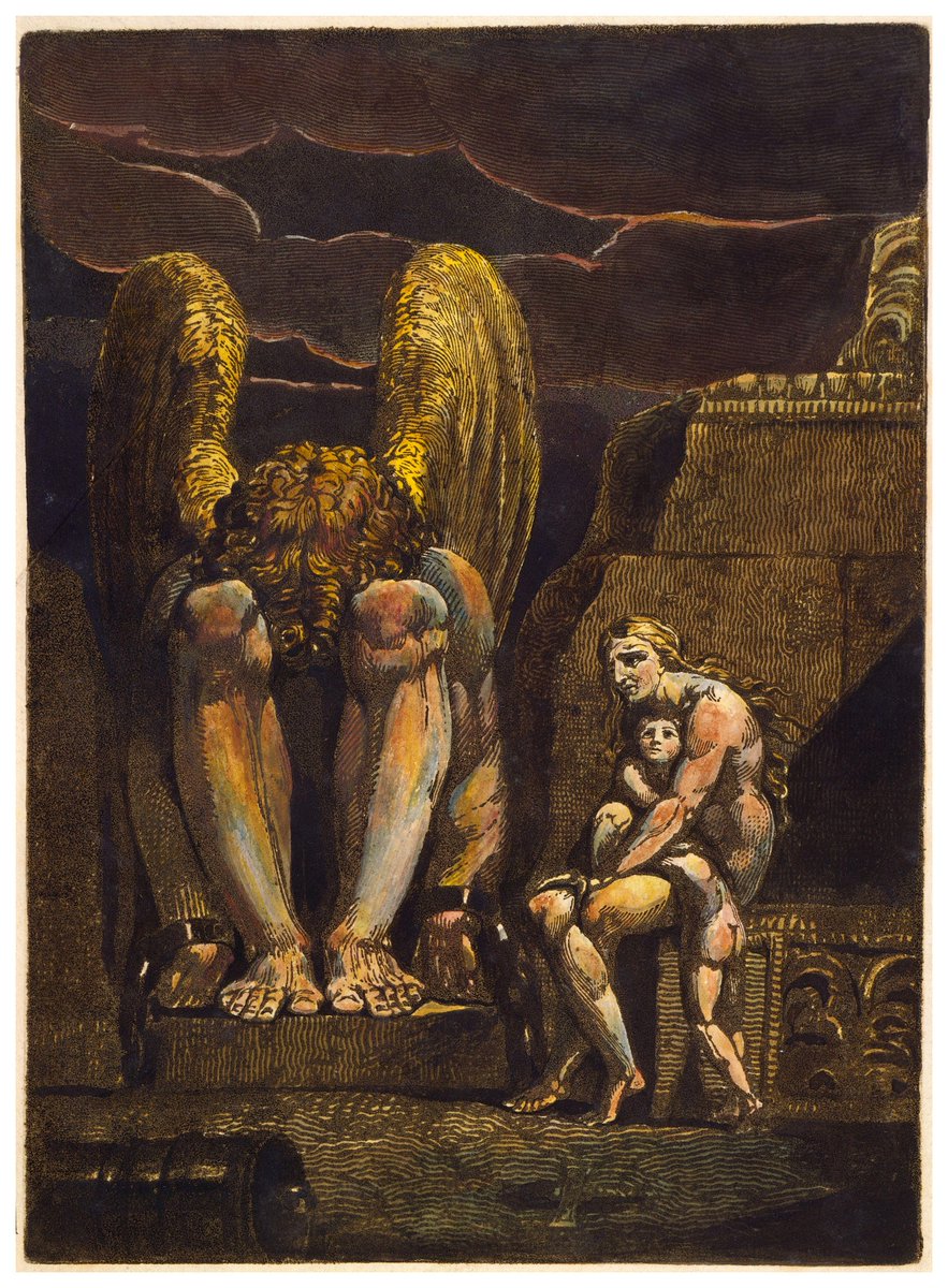 This was the frontispiece to "America: A Prophecy", from 1793, in which Blake wrote about the oppression of the human mind and the failure of the American Revolution to truly liberate humanity... among other things.