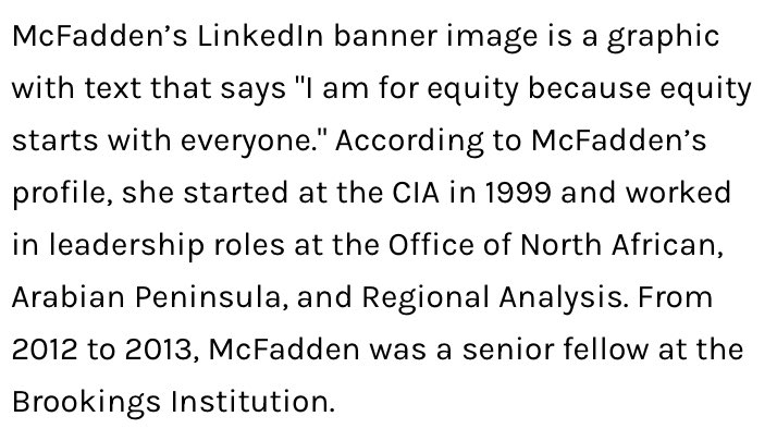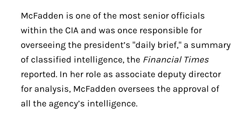 Amy McFadden oversees the *approval* of what CIA puts out as an *analytical product*…she decides what is finished intelligence released to the White House, the Pentagon, other agencies & national allied nations. Her bias decides what intelligence she s released, hidden…