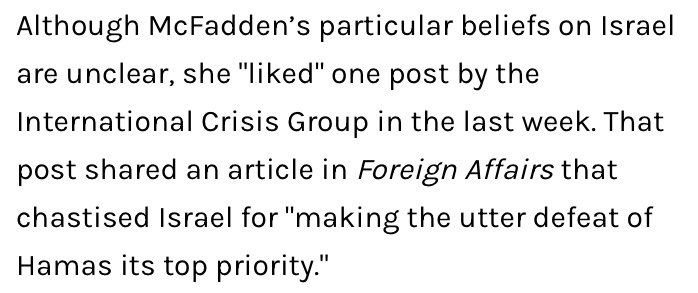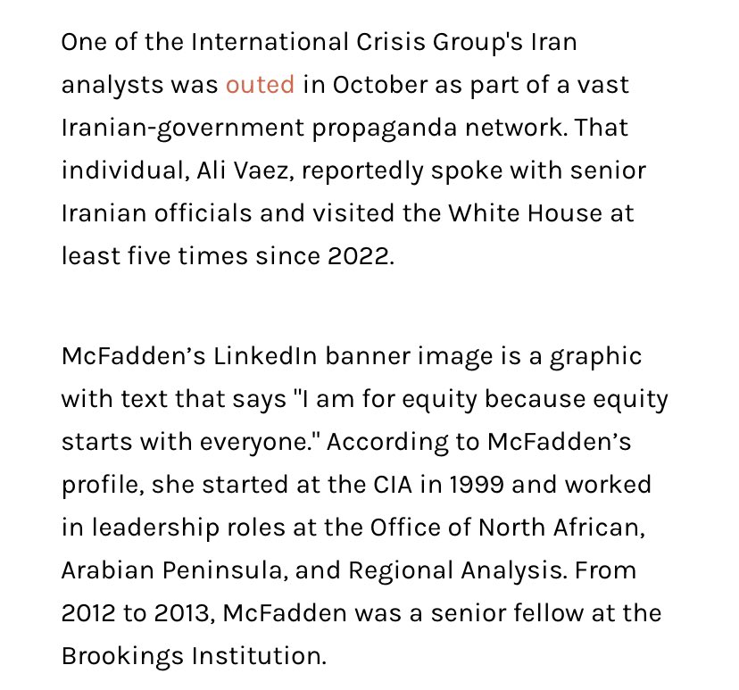 ..or how intelligence products would be manipulated into biased flawed analysis. Why is this important? Because if CIA got word of the impending October 7th attack on Israel by Hamas, Amy McFadden was the person who would decide whether warning was passed on to Israel, OR NOT.