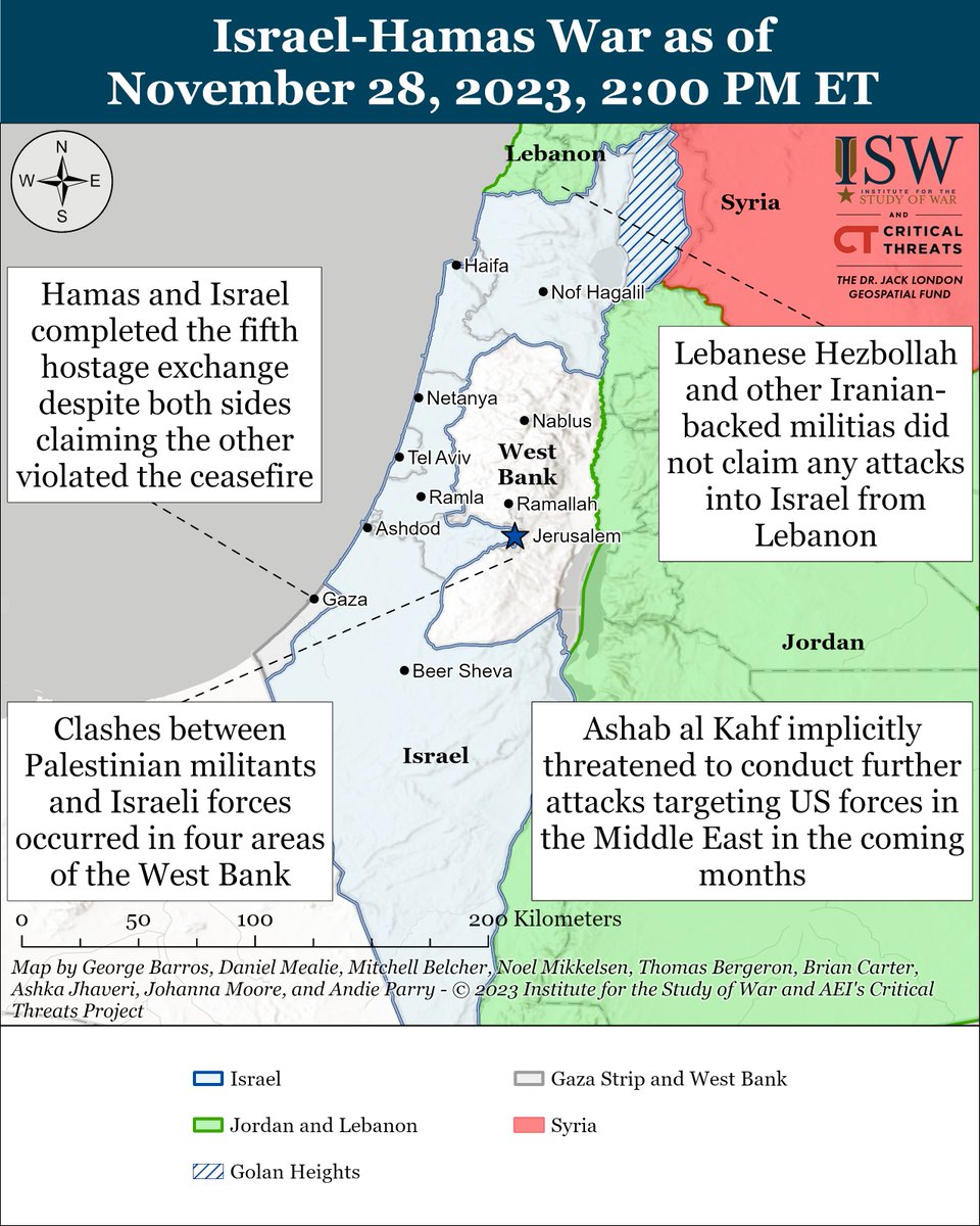 3/ Hamas, Palestinian Islamic Jihad, and Israel completed the fifth swap of hostages in the Gaza Strip for Israeli-held Palestinian prisoners in accordance with their humanitarian pause agreement.