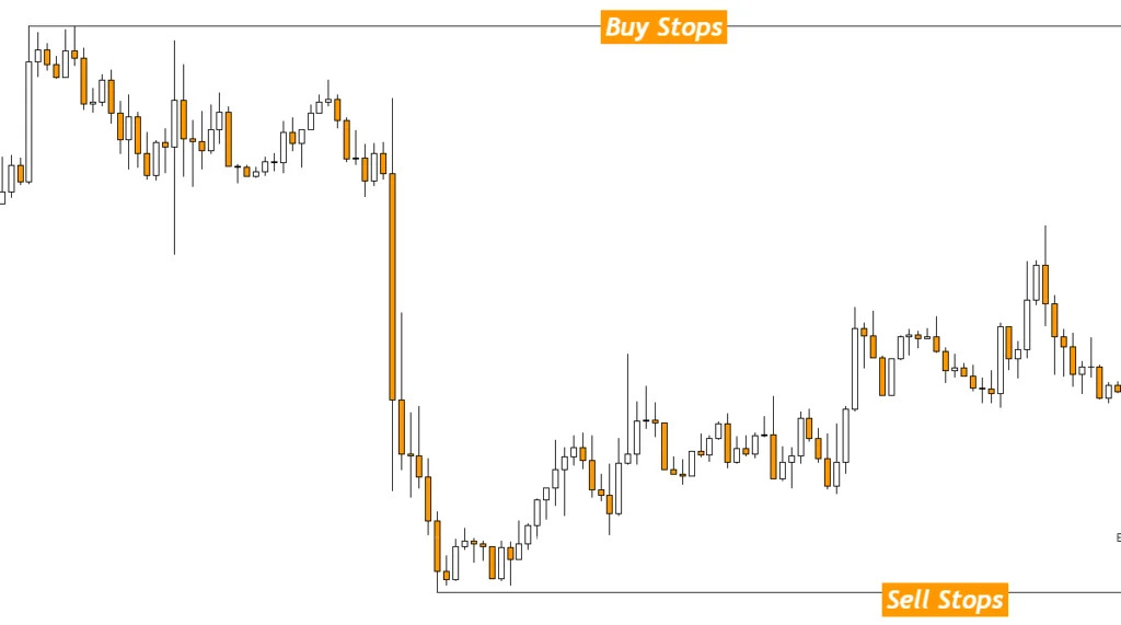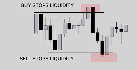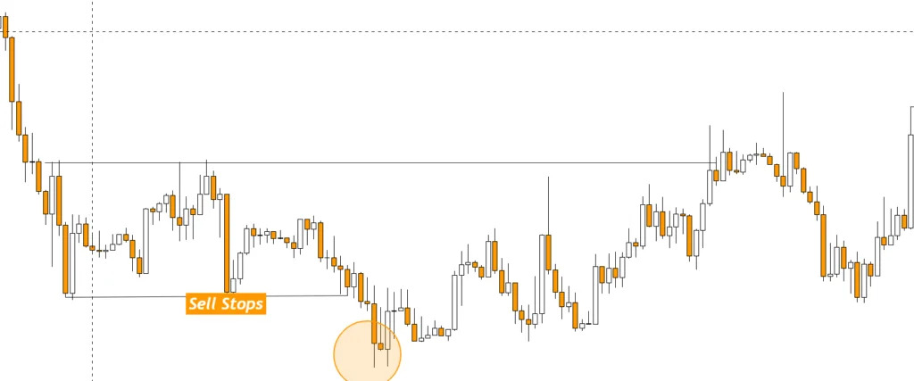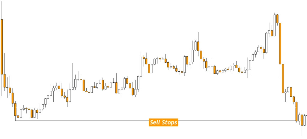 This chart shows sell-stop areas. Traders buy and place their sell stops below these points Hunt liquidity can happen before the price moves up