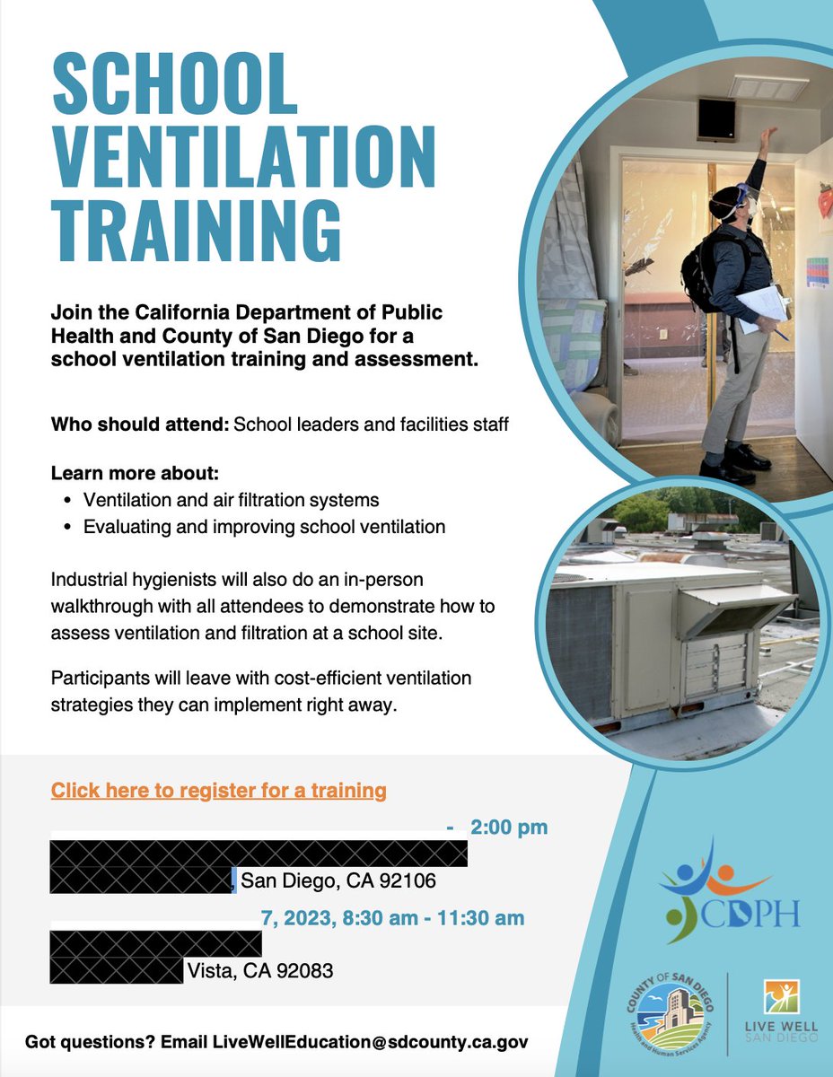 The California Department of Public Health (CDPD) & the County of San Diego were looking for a school to host a training for ALL San Diego school leaders & facilities staff on #IAQ in schools.