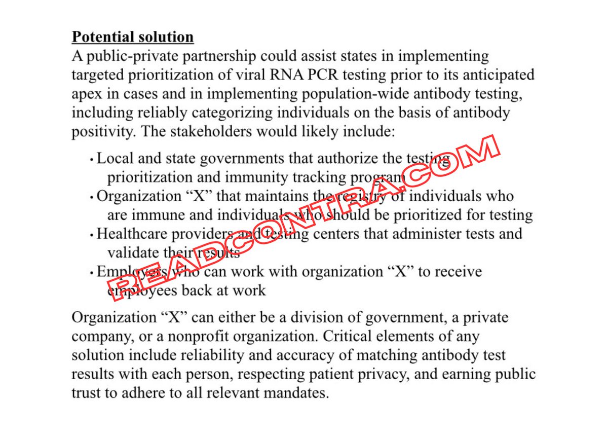 He proposed a “public-private partnership” whose stakeholders could be a “division of government, a private company, or a nonprofit organization” that would maintain “the registry of individuals who are immune and individuals who should be prioritized for testing.” ⤵️