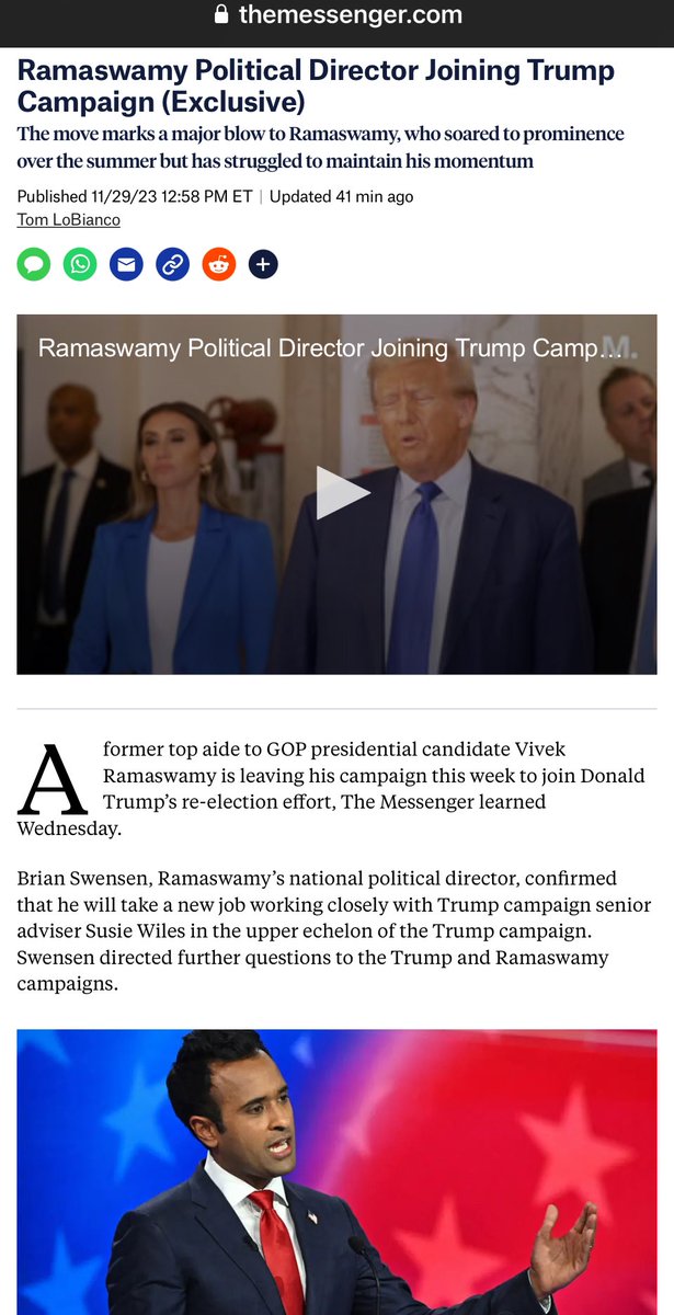 Post Millennial and Human Events and Breitbart don’t want to touch this story because there are real links between Vivek and Trump world