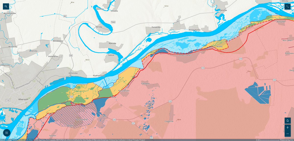 2/ Russian milbloggers claimed that battles are ongoing near #Krynky and that Russian aviation and artillery units are heavily striking the area.