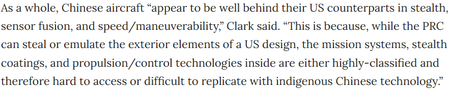 There's also insinuation that PLA mil tech advances are "dependent" on espionage which... is actually not an unhelpful impression for all parties involved.