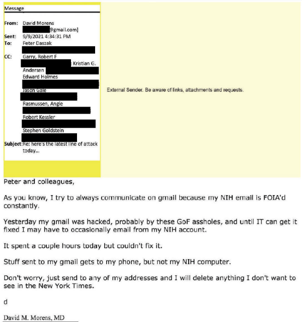 Dr. Morens intentionally used his personal email to avoid FOIA and evade transparency to the American people: