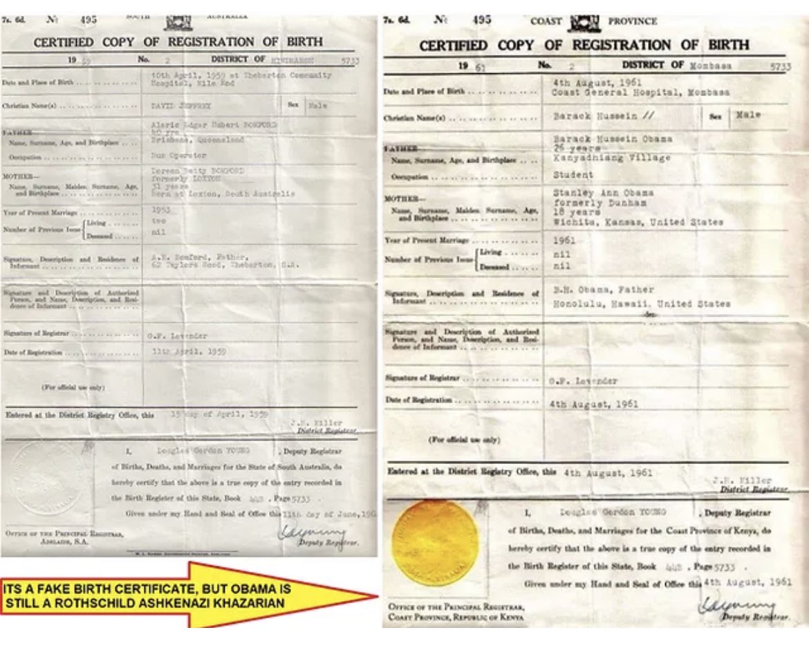 No wonder there are so many issues relating to Obama's fake birth certificates, the following image on the right below was faked using an Australian man's birth certificate.