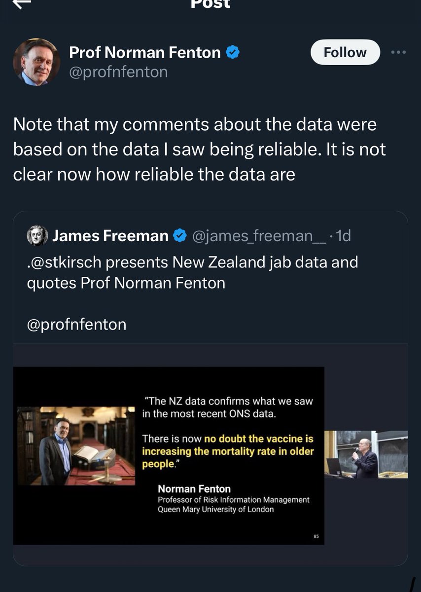 Highly vaccinated younger age-groups in New Zealand don't even have a mortality rate of 1/1000 for ALL CAUSES COMBINED, meaning his claim is mathematically impossible for those ages.