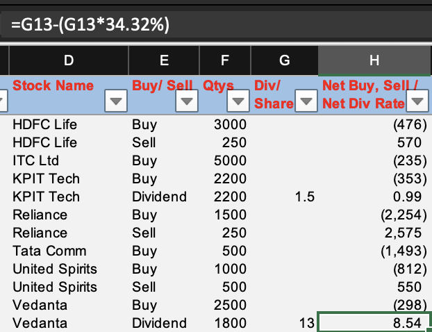 To calculate Net Dividends - please add the right percentage.