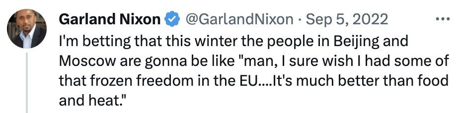 Garland Nixon also went all-in on the let-us-commit-genocide-in-Ukraine-or-we'll-freeze-you-to-death threat. these aged well... (yes, there's more of them: )