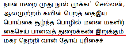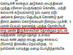 Another reference is from Nattrinai 22, where the poet compares monkeys drenched by rain and stuffing their mouths with food, with those that perform the Nonbu/Vrata bath and eat only after that.