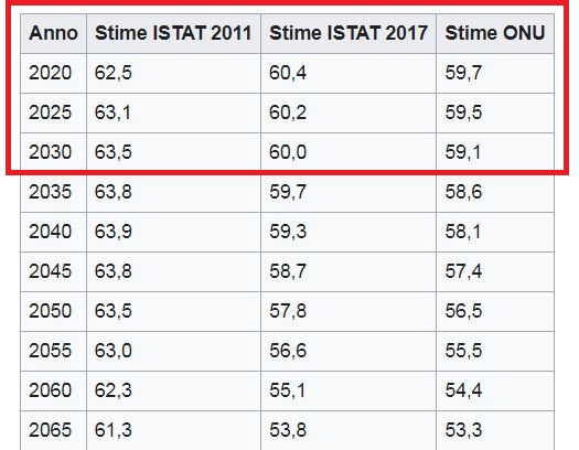 delineare i trend demografici dell'Italia nel XXI sec. Trend ipotetici che in passato sono risultati troppo ottimistici, tanto che rispetto alle previsioni del 2011 e del 2017 siamo già arrivati al 1 gennaio 2023 con 58.850.717 abitanti. Decisamente peggio rispetto