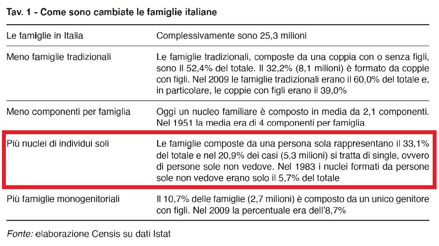 nelle nuove generazioni. Il vecchio mito del "lavorare sodo" sta crollando, perché il gioco non vale più la candela. Infine altro cambiamento importante: la frammentazione/riduzione delle famiglie e l'aumento della solitudine, soprattutto nei Millenial/Gen Z. Questi trend