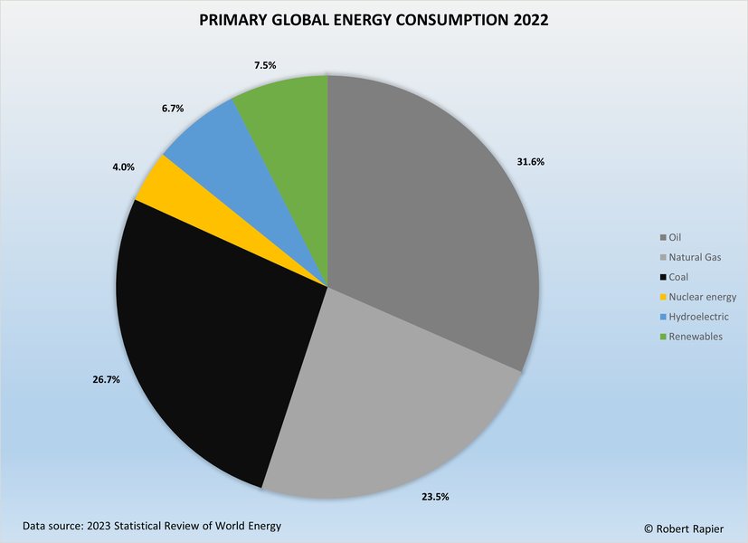 attuale quasi l'82% dei consumi globali di energia derivano dalle risorse fossili. Una percentuale elevatissima, che è stata scalfita veramente poco dall'ascesa delle rinnovabili. Nonostante decenni di raccomandazioni, piani, proteste contro l'oil & gas e incentivi