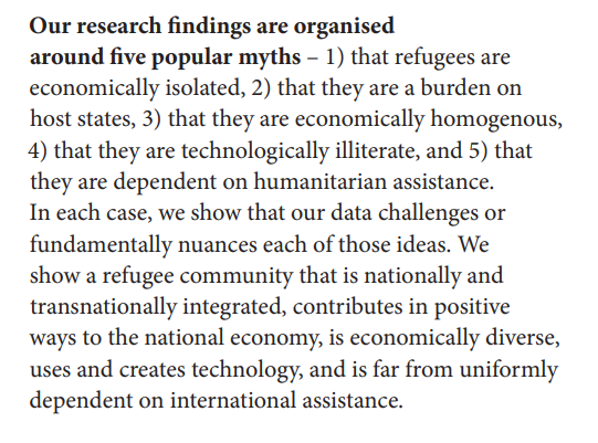 3/ The research opens by telling us how we're facing the most serious refugee crisis in 20 years and aims to dispel five myths pertaining to asylum seekers' economic impact