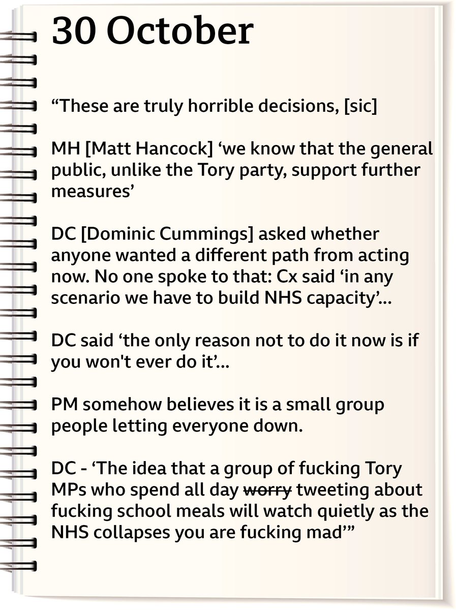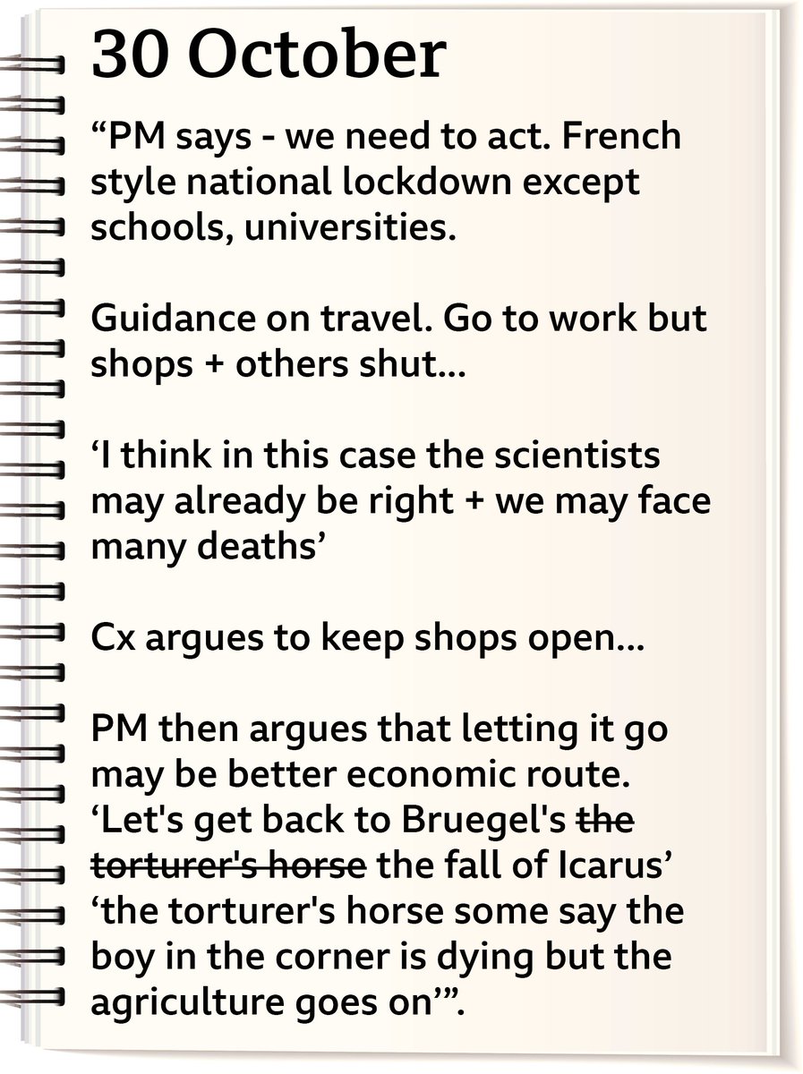 With Boris Johnson giving evidence on Wed at #covidinquiryUK, I spent time looking back at one part of the pandemic which hasn’t got so much attention: decision to lockdown in England a second time on 5 Nov 2020. So here’s what have pieced together on that. Long 🧵(apologies).