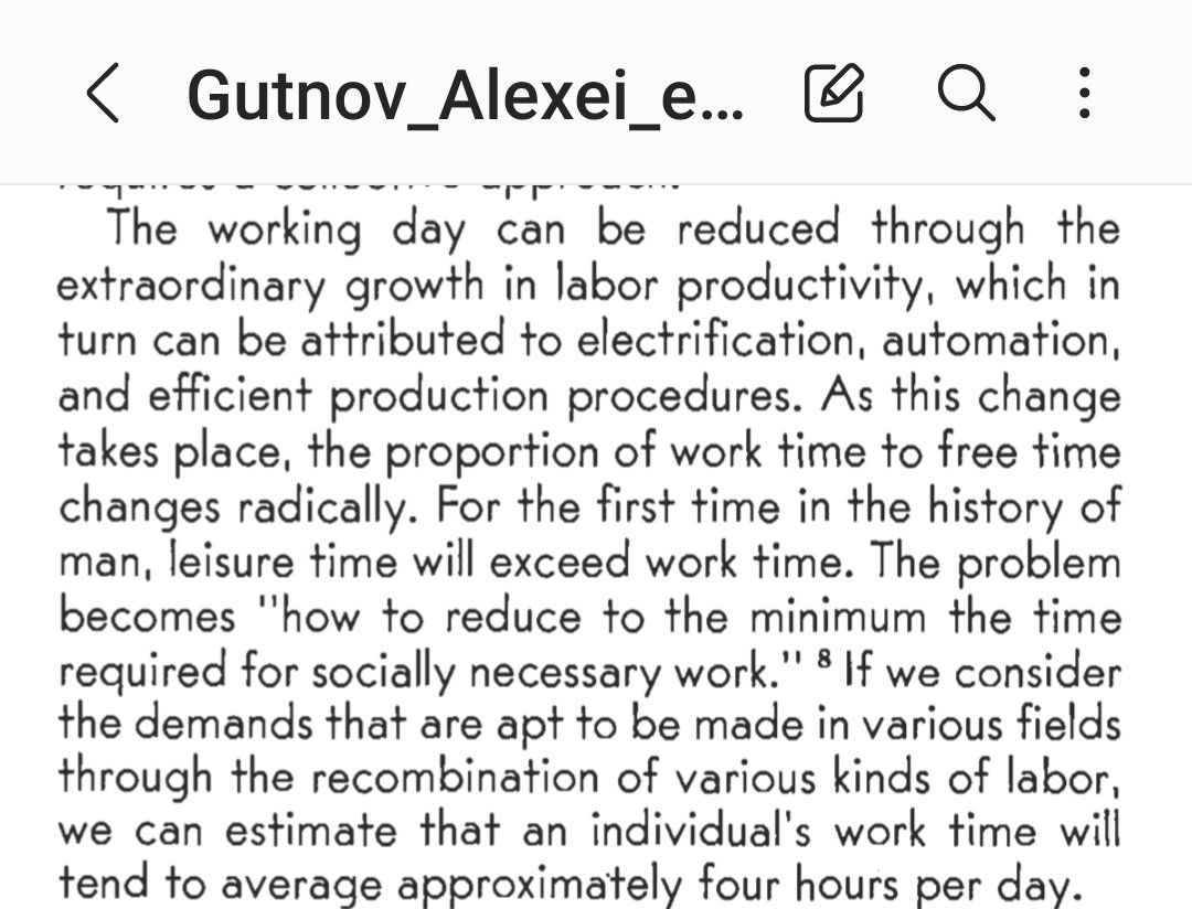 I take it back. In addition to the other parts that don't seem to have anything to do with city organization, there's a lot of giving away what Communism is really about: minimizing work, even if that means freezing or reducing the standard of living. Need less, work less.