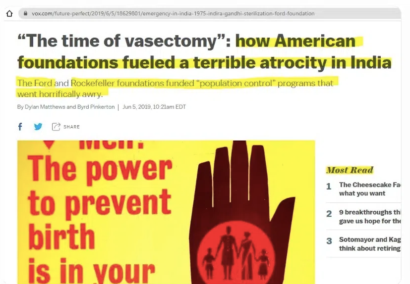 The Rockefellers began donating tens of millions of dollars to the National Institute of Immunology in New Delhi, India, in 1985. For what purpose? To investigate the development of a vaccination to limit fertility. Yes, you read that correctly. A vaccination to regulate fertility...