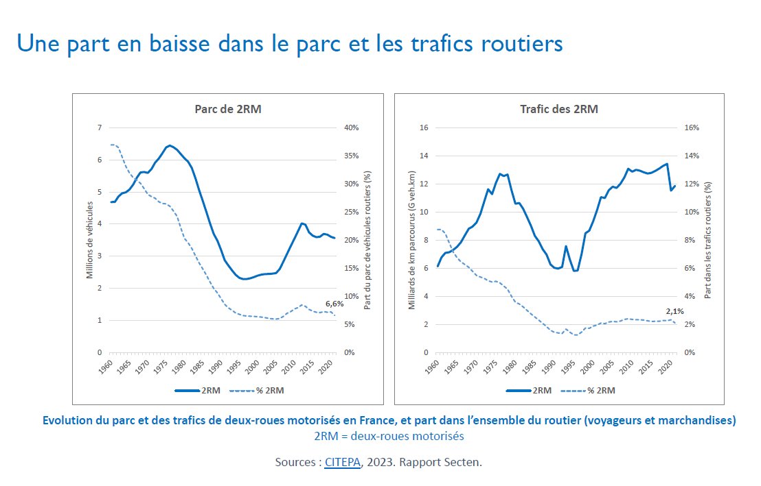 👉 Puis une forte ↘️ des cyclomoteurs, et une ↗️ des motocyclettes (+ de 50 cm3)