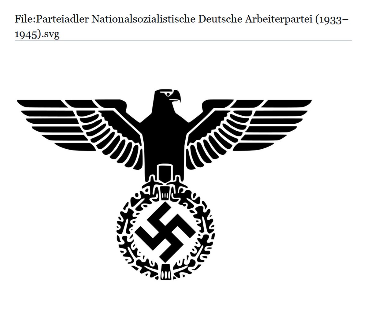 3. L'aquila nazista non è solo quella Terzo Reich di Hitler, ma anche quella del Partito Nazista di Hitler (Partito Nazionalsocialista Tedesco NSDAP). L'aquila del Reich Nazista guarda a sinistra, quella del Partito Nazista guarda a destra, per il resto sono ovviamente identiche.