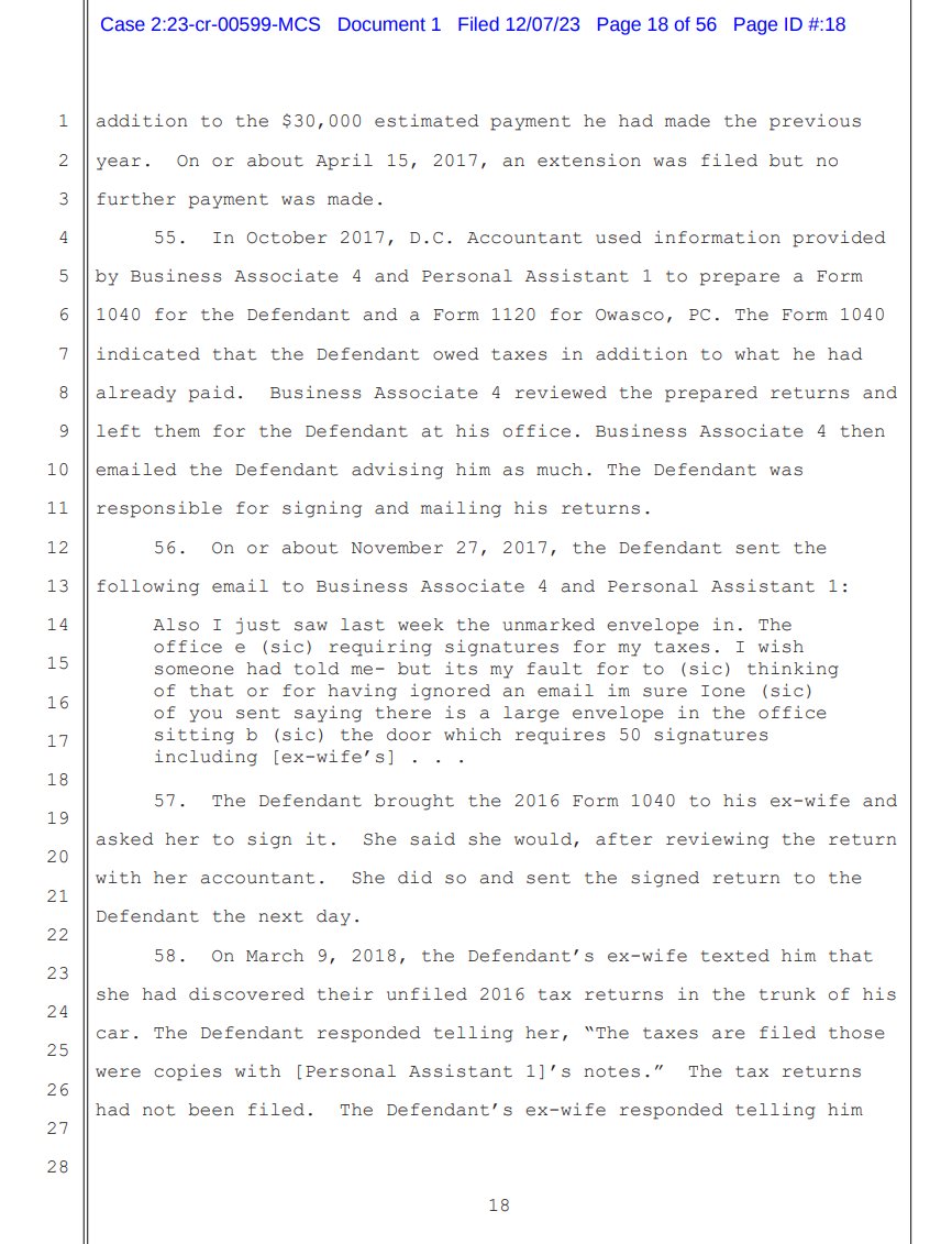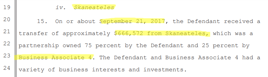 "In 2018, HWIII made another 15 transfers to Owasco, PC, totaling approximately $2.1 million, and the Defendant transferred approximately $843,999 of these funds to Business Associate 3."