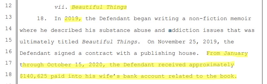 Special Counsel Weiss uses passages from Hunter's own memoir, Beautiful Things, to inform this charge and piece together Hunter's various "activities" in 2018.