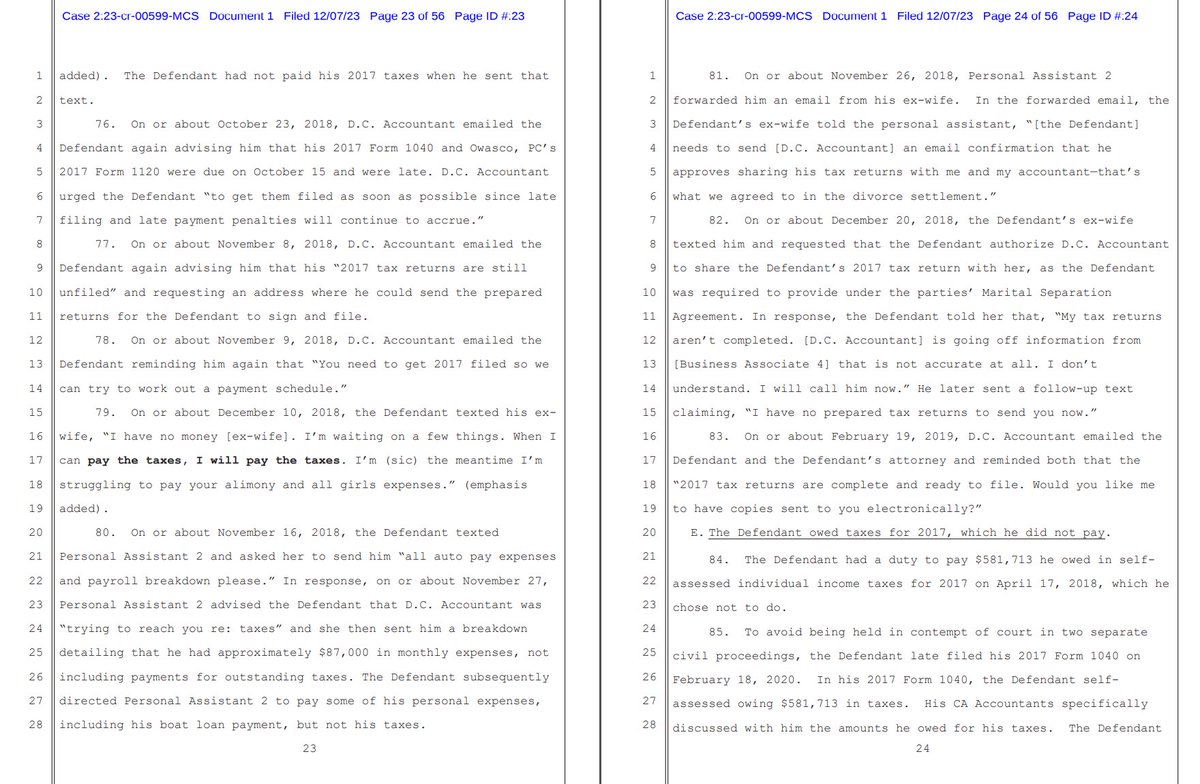 "As part of the lawsuits, he had to produce financial records, including his tax returns. These lawsuits forced the Defendant to file his outstanding tax returns for 2017 and 2018."