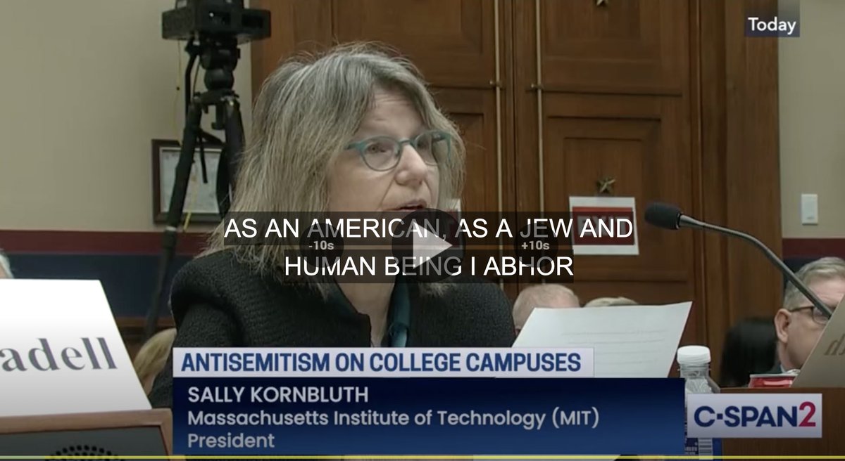 Then, listen to the statement by Sally Kornbluth, the President of MIT (who is Jewish). It clear, sincere and powerful. And it makes you wonder why wasn't this statement highlighted? Why was she attacked? c-span.org/video/?c509687…