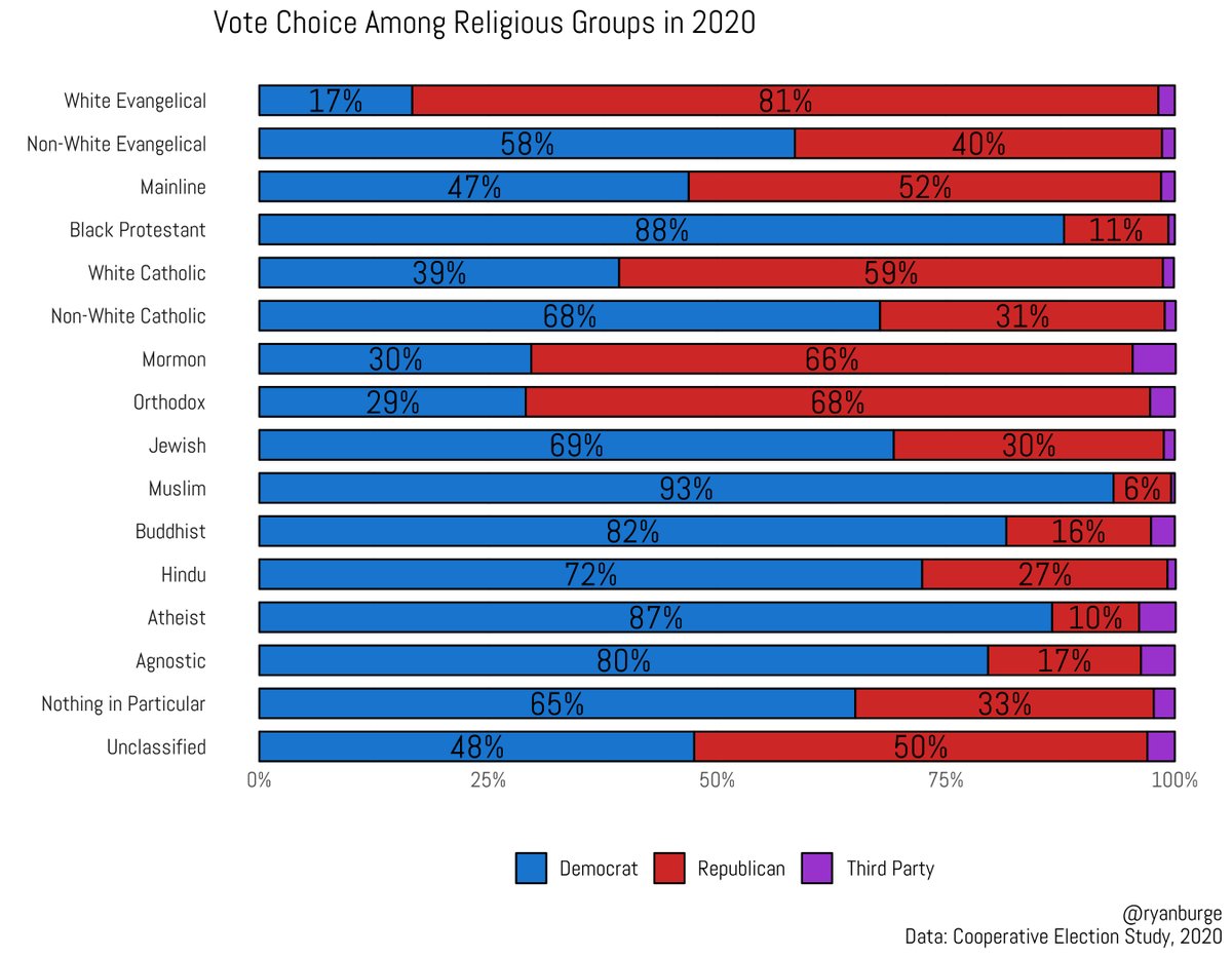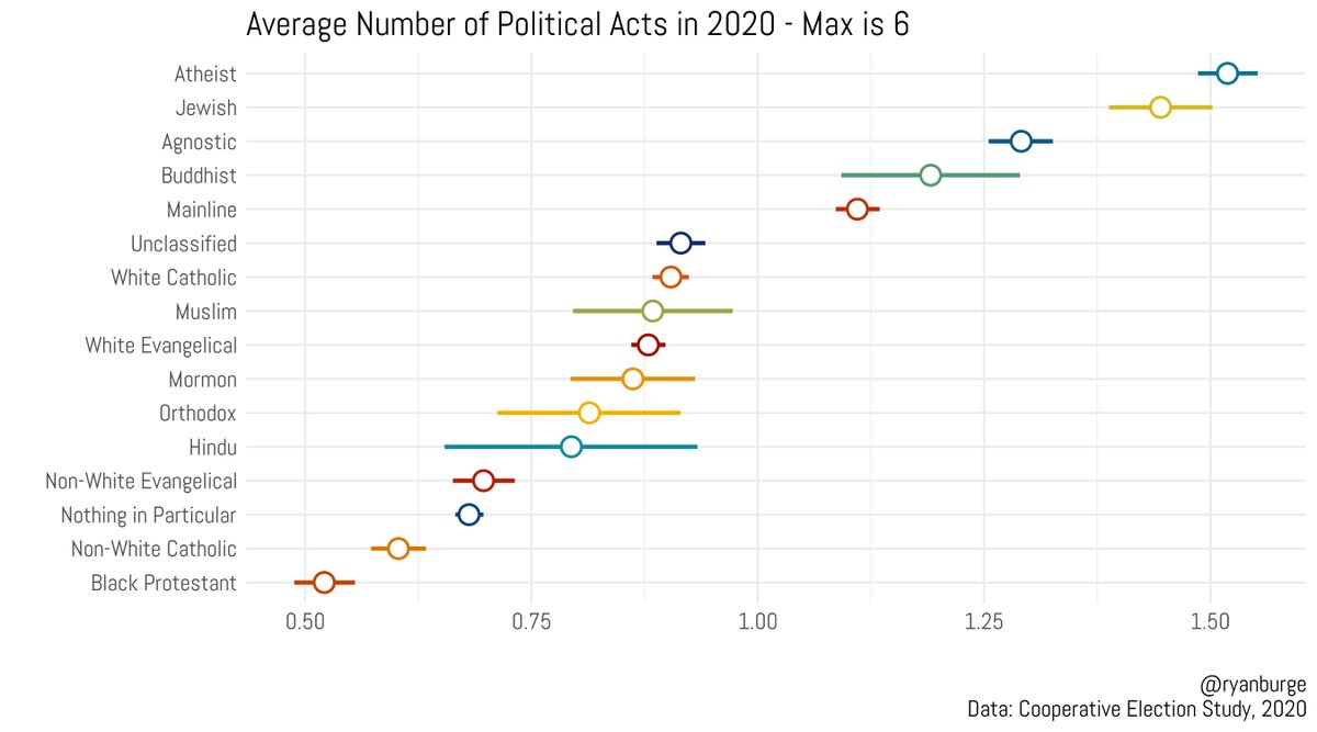 DATA: Secularists (atheists and agnostics) are the most politically partisan + politically active group in the US, far more than “evangelicals”