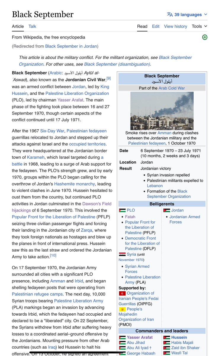 Leila Khaled yg bergabung di PFLP, seorang pengungsi di Jordania, ikut melakukan makar ke Raja Jordan. Peristiwa ini dinamakan Black September. Pengkhianatan ini tentunya kejahatan besar dlm hukum Jordania