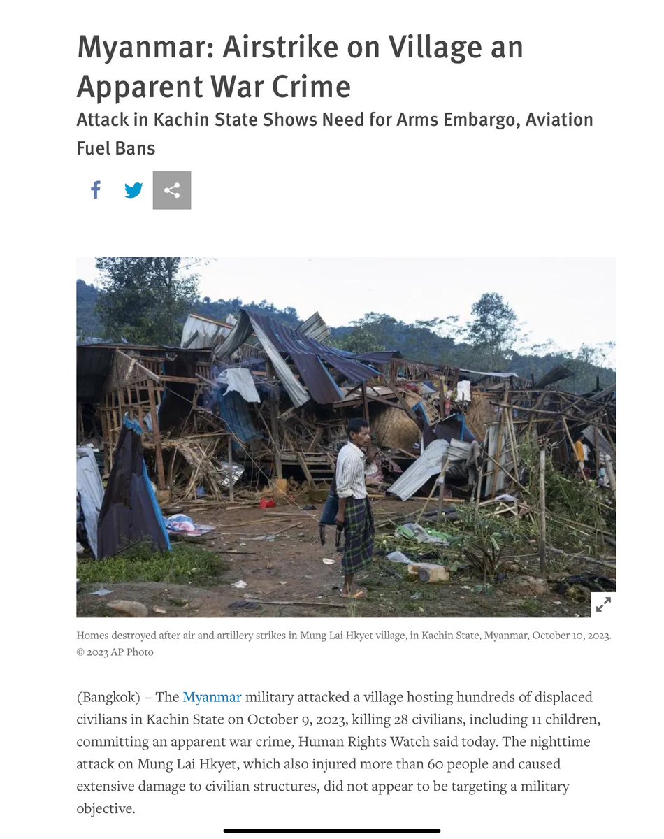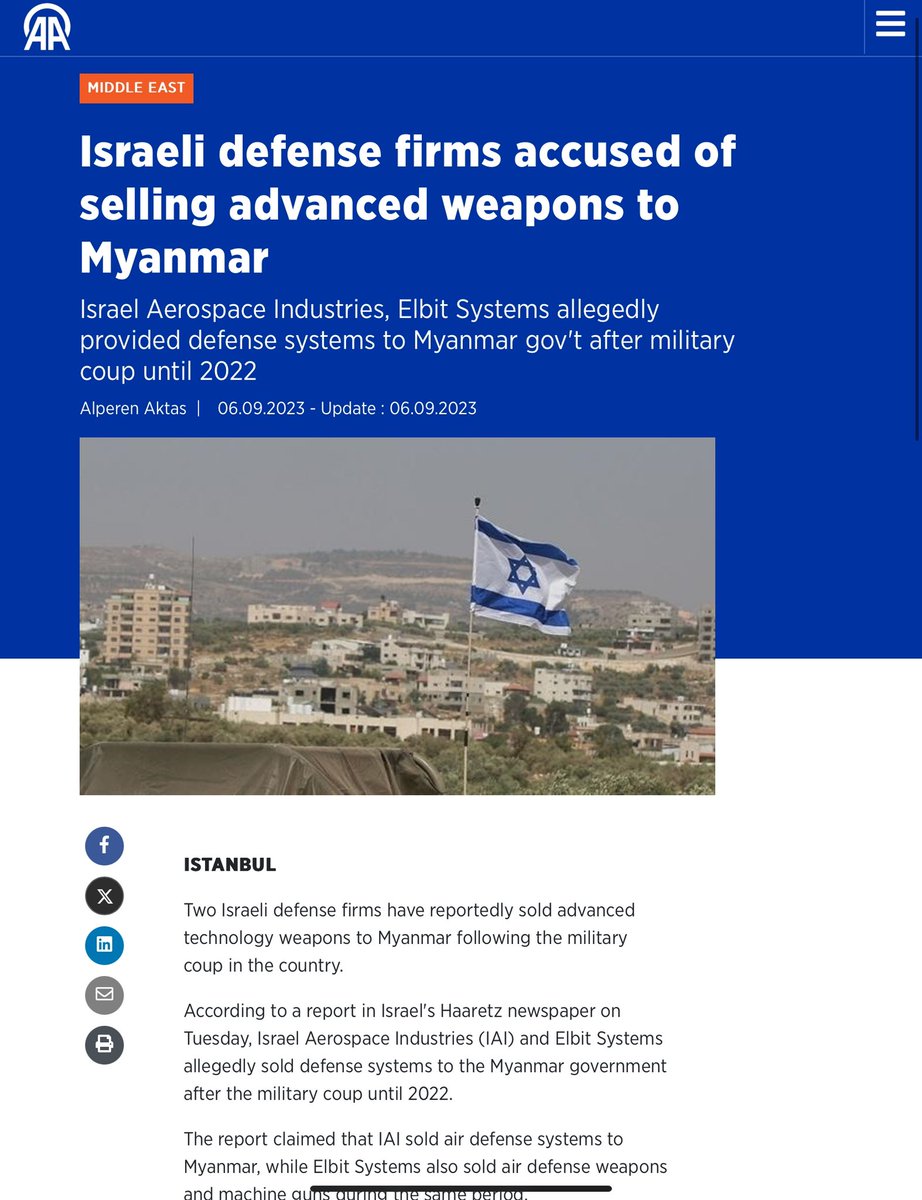 Junta Militer Myanmar punya relasi kuat dgn Israel. Mereka beli senjata dari Israel. Mereka bahkan melakukan airstrike ke populasi sendiri dgn amunisi Israel, ya mirip kpd org Palestina