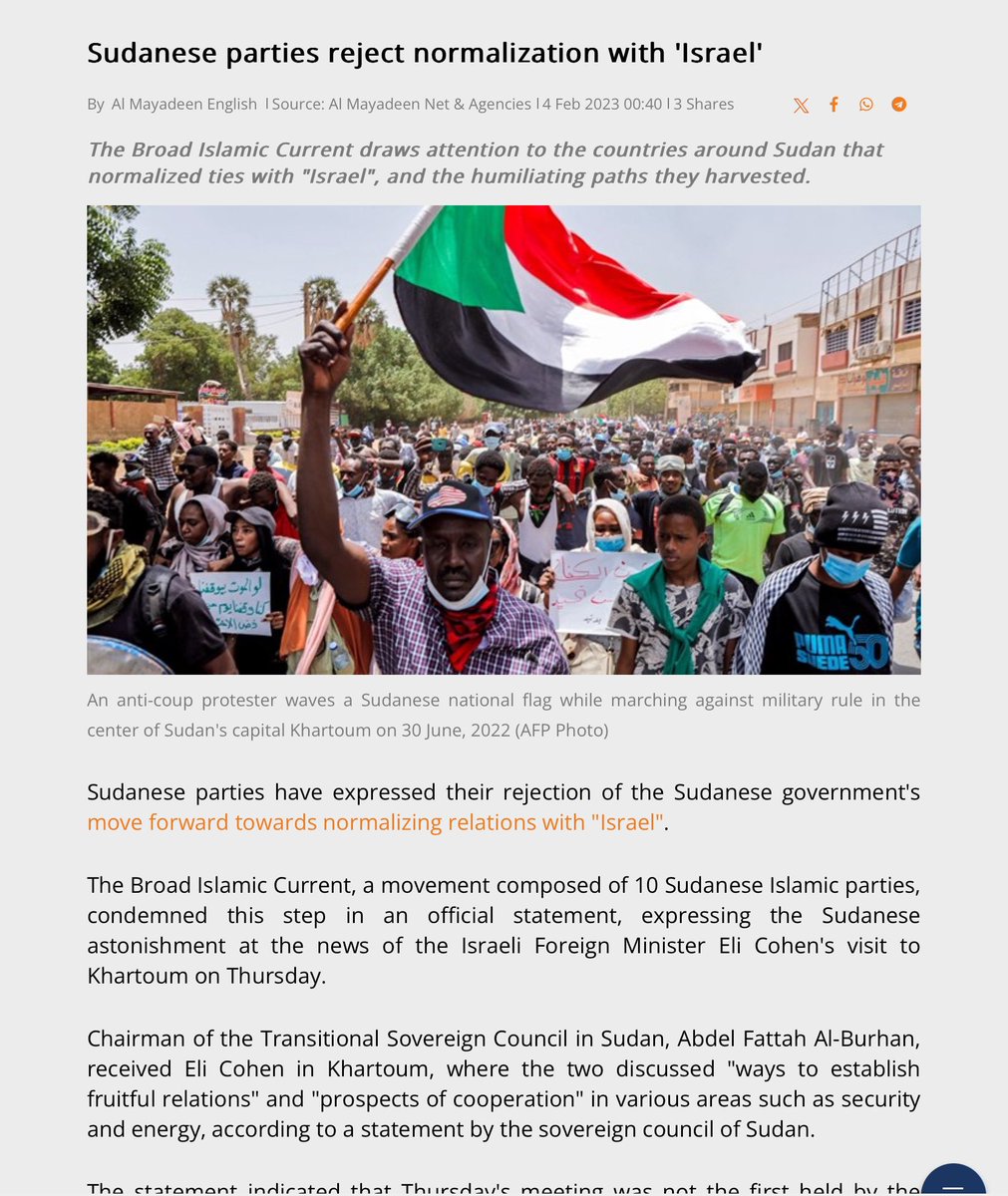 Namun jangan salah sangka, walaupun pemerintah Bahrain, Uni Emirat Arab, Maroko dan Sudan menormalisasi dengan Israel, rakyat mereka banyak yang masih mendukung Palestina. Suara pemerintah bukanlah suara rakyatnya. Solidaritas masih ada walaupun pendukung Israel jg ada.