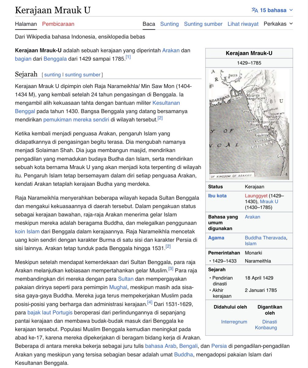 Francis Buchanan sudah mengidentifikasi populasi muslim di Arakan pd tahun 1799. Dinasti muslim jg berada di Arakan sejak Min Saw Mon berkuasa (1434) sebagai sultan.