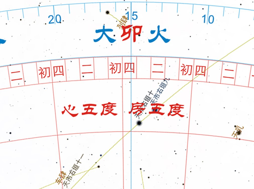 可是,房宿一到心宿二不是“五度”嘛。