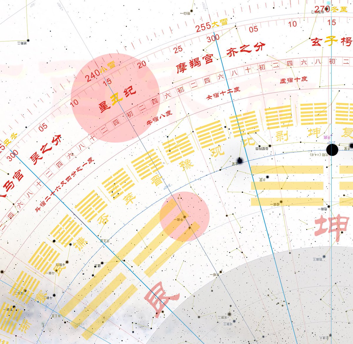 要进行“天文考古”,首先要精确掌握古人所用的观测坐标,如“十二次”(黄道十二宫)、二十八宿、二十七宿、六十四卦天区、360°黄道干支刻度等。