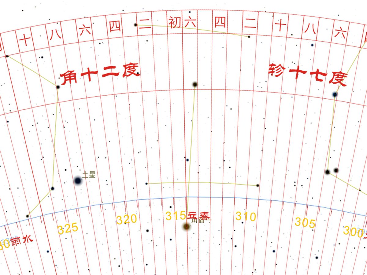 我把角宿的起点线放在角宿一,当时角宿一黄经还不到315°。