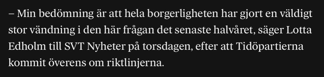 Minister Edholm menar att borgerligheten har, på grund av dessa frapperande avslöjanden om hur kapitalism fungerar, bytt uppfattning de senaste 6 månaderna. Bättre sent än aldrig antar jag!