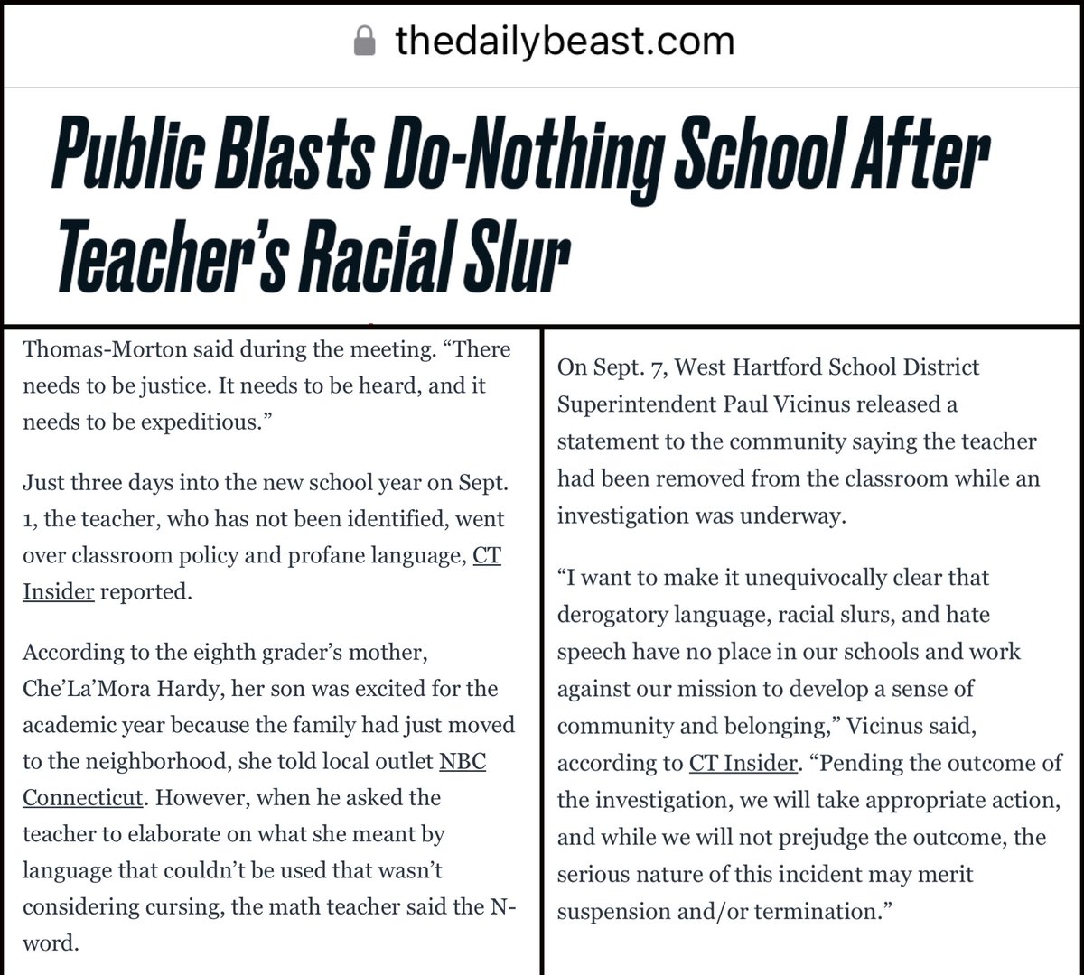 This "racism" has received considerable coverage in the Connecticut community it occurred in. Here's the boy's mom corroborating that it was lesson on prohibited words, but treating it as though it was racism directed at her son. White liberals are afraid to be honest with her.