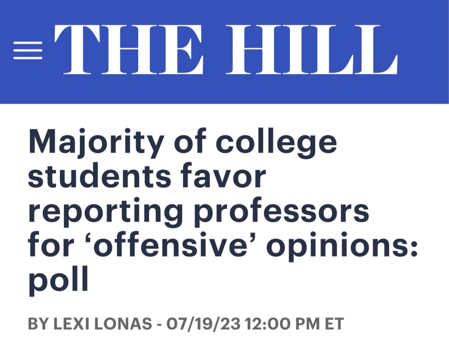 Leftist professors teach students opposing opinions are "hate". When today's college students favor reporting "offensive" opinions they almost always mean conservative ones.