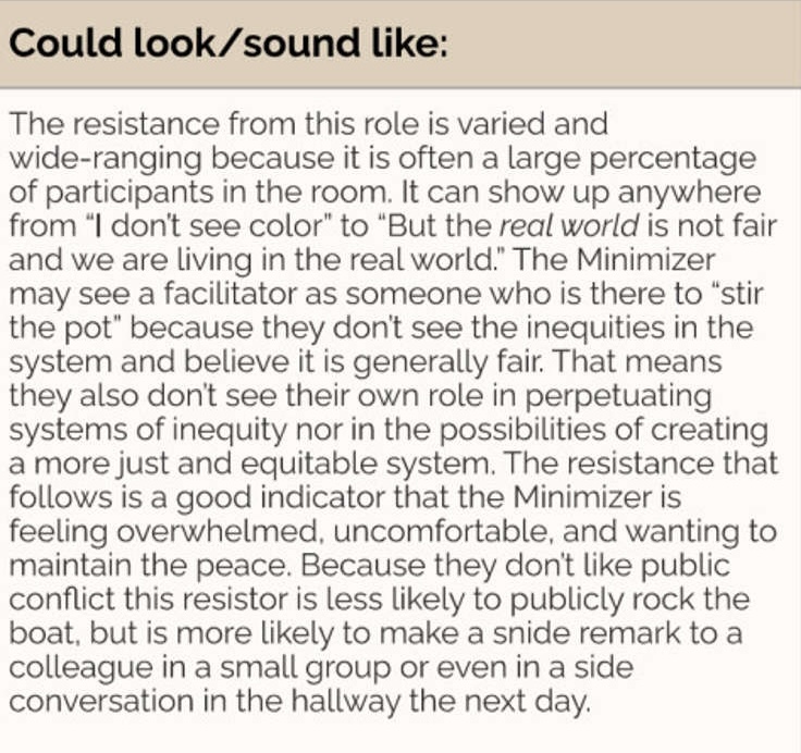 Minimizers are a problem because they don't have enough guilt. They "don't see their own role in perpetuating systems of inequity." 🧵