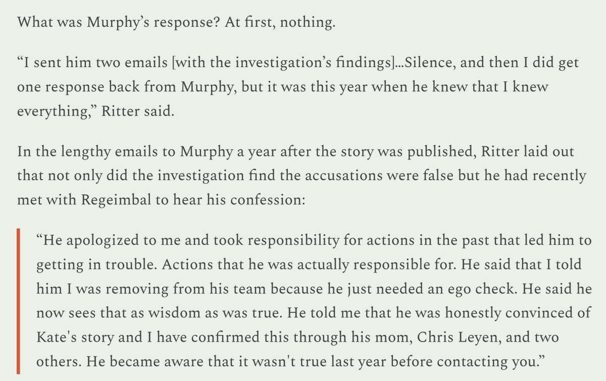 When I reached out for comment, Murphy said because Ritter had threatened to sue "it unfortunately killed any further communication." He hinted the story would be updated during a lawsuit "but that's not a question I can answer."