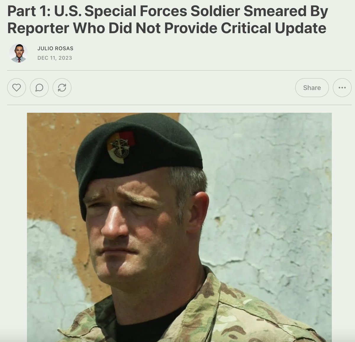 🧵: @Chuck_Ritter92 is a decorated Special Forces soldier who has served the U.S. for many years. His life was nearly derailed after @JackMurphyRGR published a report last year that accused him of unprofessional conduct involving a soldier's significant other. The Army's investigation found none of the accusations were true.