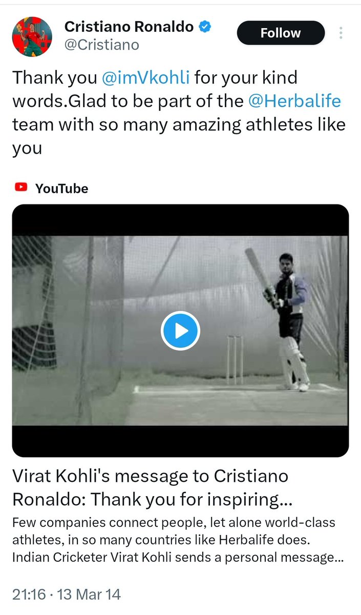 Cristiano Ronaldo's tweet on Virat Kohli.