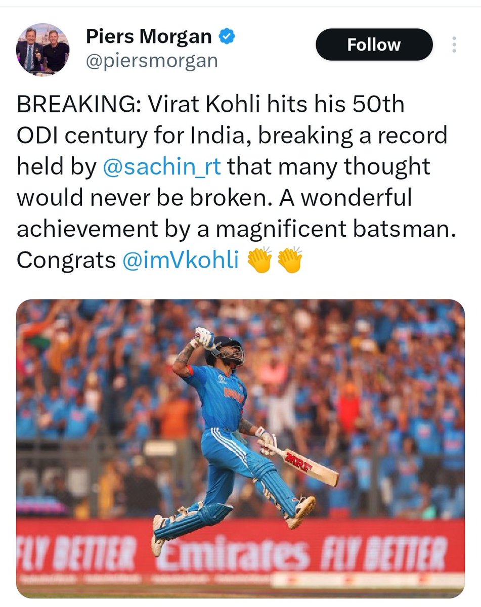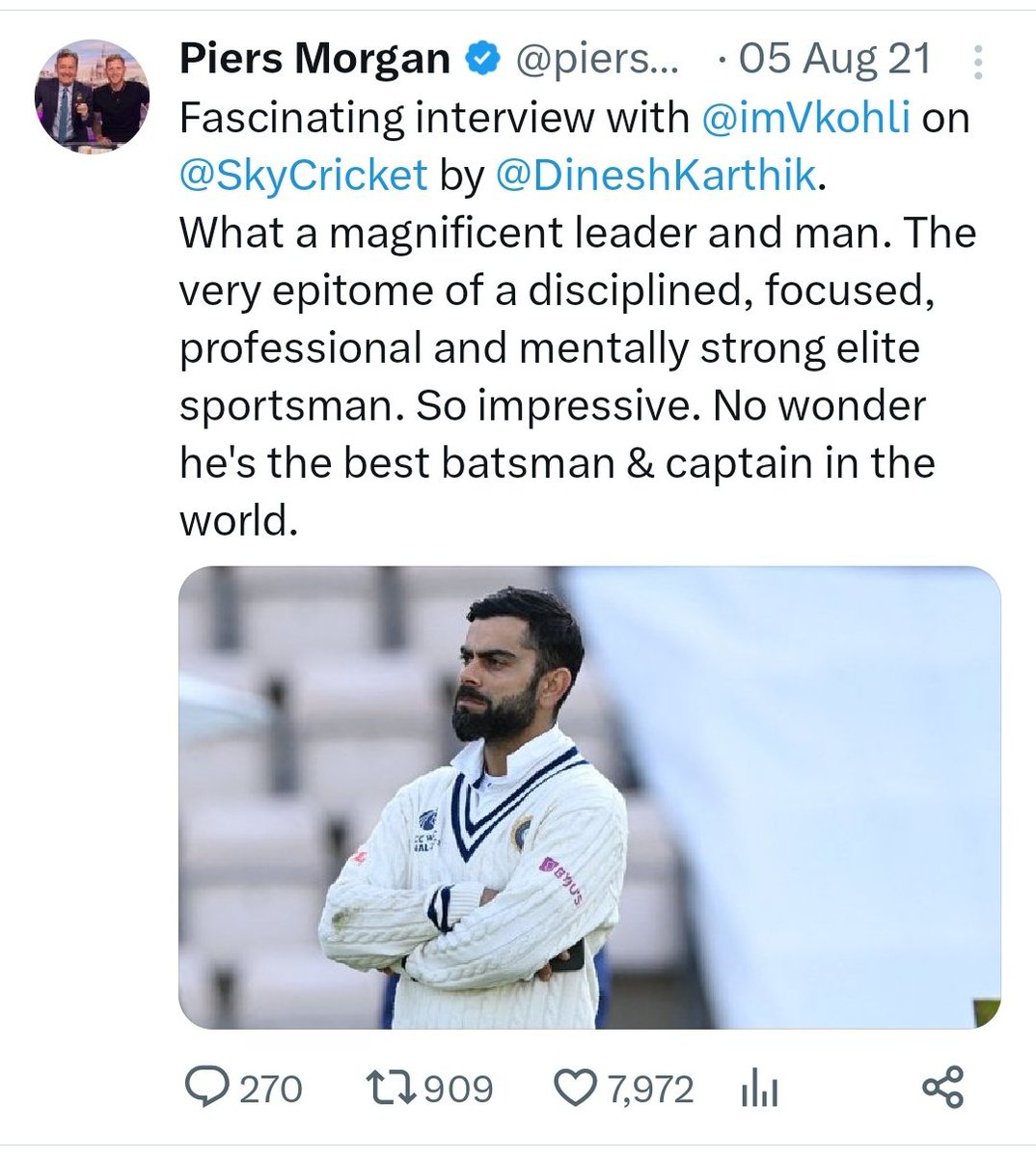 British Football Journalists 'Piers Morgan' on Virat Kohli.