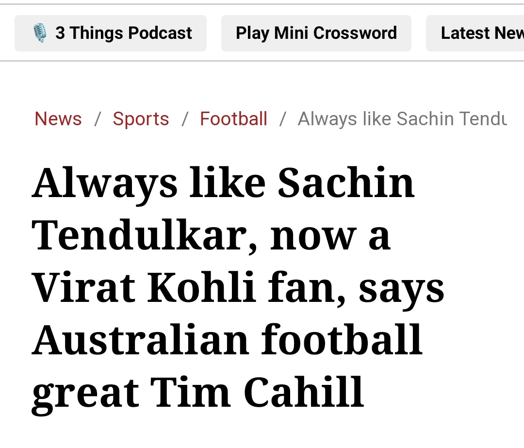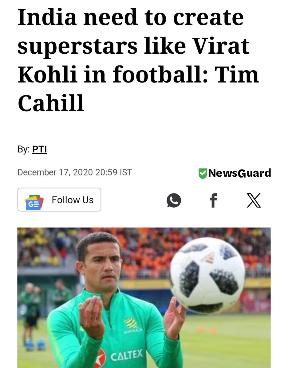Australian football great 'Tim Cahill' on Virat Kohli.